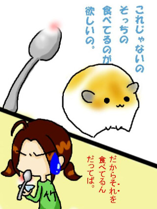 …るびしゃんの食べられるものを食べてるときはいいんですけどね、たまにゃあ、ハムスターの食べられないものだった食べているわけですよ。